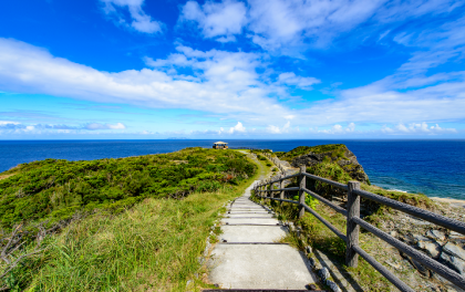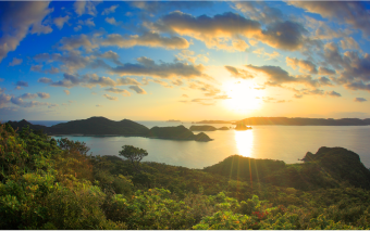 座間味の西側にある「女瀬の崎展望台」は、美しい夕日スポットとして有名。波が力強く打ち寄せる絶景が楽しめます。崖の上を歩いているようで、スリルもたっぷり。