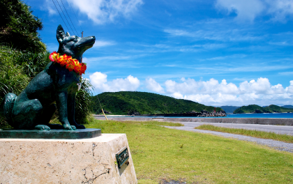 映画『マリリンに逢いたい』で有名なマリリンは、実在した犬。ウルノサチの岬で、ボーイフレンドのシロが阿嘉島から泳いでくるのを待っているのです。