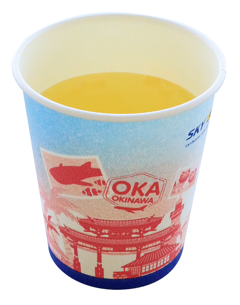 スジャータめいらくとスカイマークが共同開発した、沖縄県産パイナップルの華やかさが広がる、果実感あふれる味わいのオリジナルドリンク。