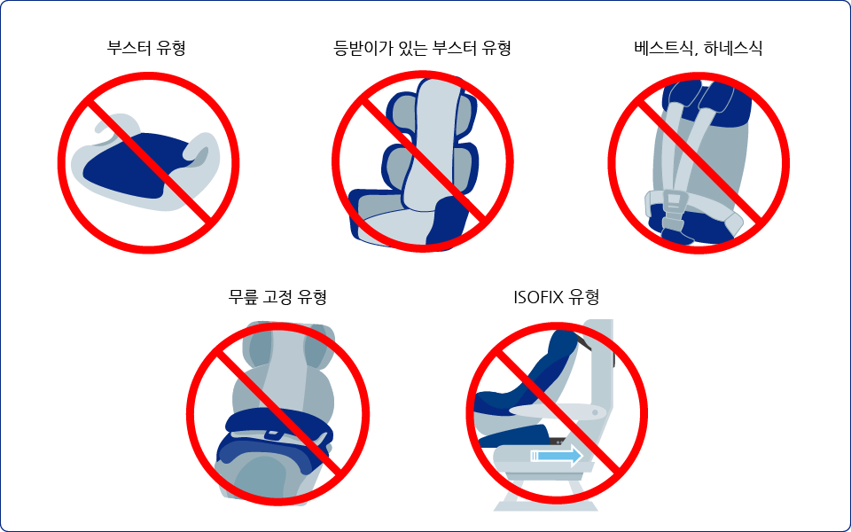 기내에서 사용할 수 없는 어린이 좌석 유형